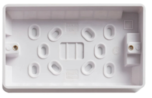 A pattress is a white box which the socket or switch sits in when the socket/ switch is not being sunk into a wall.
